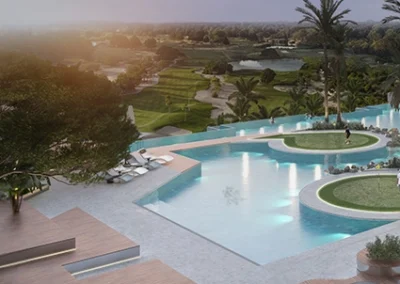 Le complexe résidentiel offre un éventail de prestations qui fait honneur au prestige du lieu. Des espaces verts parmi les plus esthétiques, un jardin aquatique qui inspire la sérénité, une piscine aux dimensions exceptionnelles et un Sky Golf, un simulateur de golf intérieur ainsi qu’un terrain de golf nocturne lumineux sont quelques-unes des promesses faites aux résidents. Inutile de mentionner qu’il n’y a pas besoin d’être passionné de golf pour apprécier la magie des lieux. En effet, avec sa piscine à vagues, son skatepark, ses terrains de sports et autres aires de jeux récréatives, cette perle rare a de quoi séduire les petits et les grands.