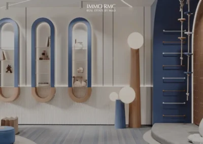 Mais ce n’est pas tout : skate park, terrain de basket, court de tennis, salle de golf en réalité virtuelle, salles de sport et de fitness interactif, jeux d’arcade, espace de coworking ou encore bibliothèque sont autant d’aménagements destinés au bien-être optimal des résidents. Une salle de jeux intérieure pour enfants avec de multiples équipements charmera également les parents.