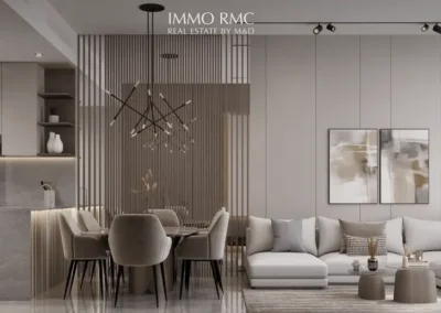 Espaces verts, golf virtuel, piscine et jacuzzi sophistiqués, hammam et sauna, chutes d’eau, mais aussi salle de sport épurée, piste de course, aire de jeux, cinéma en plein air, espace de barbecue et activités aquatiques pour les enfants permettent de profiter de moments agréables au quotidien, seul ou en famille. Les services de conciergerie de luxe et le parking surveillé assurent également une expérience haut de gamme, le tout dans une architecture entre faune et flore.