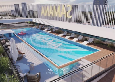 Le projet est composé de 17 étages dans lesquels chaque logement est équipé d’un système de domotique intelligent, de finition de haute qualité et d’un balcon avec piscine privative en option.