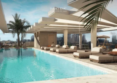 - Une piscine sur le rooftop avec vue panoramique et lounge.