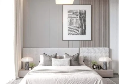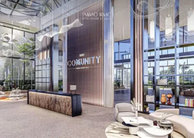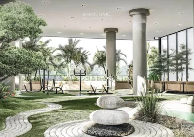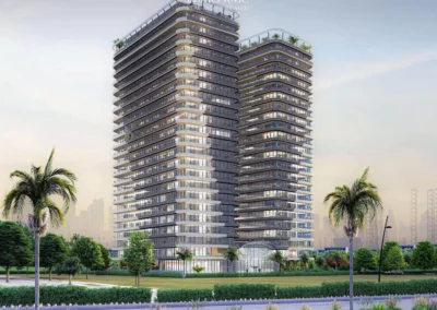 Ce développement impressionnant comprend 4 niveaux de sous-sol, un rez-de-chaussée, et 21 étages résidentiels avec des vues imprenables sur le stade de cricket, le canal sportif et les espaces verdoyants de la communauté environnante.