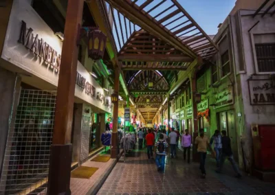 Par ailleurs, comme nous l’avions notifié un peu plus haut, quand bien même ce quartier n’est plus le centre de Dubaï en raison de l’expansion et de la modernisation de la ville, il demeure un quartier animé. Il est célèbre pour ses nombreux commerces, notamment ses souks variés comme le Gold Souk et le Spice Souk. Ces marchés sont des lieux incontournables pour découvrir des trésors culturels et traditionnels.